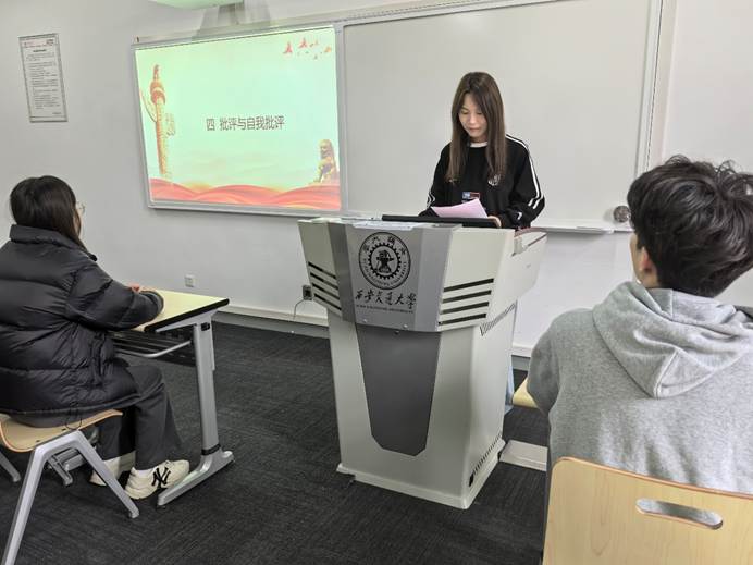 支部党员均进行了严肃的批评和自我批评,例如,李欣同学自我批评因学习和项目繁忙,未能及时跟进理论学习;文体委员李合翕同学则自我批评无法突破自己的舒适圈,科研方面沉浸在做仿真写代码的舒适圈,而未能提升自身的硬件实力,生活交际方面也是跟自己本科的老朋友玩,新朋友认识的少,并且他批评了包括他自己在内的四位党支委工作不够积极,希望能在新的一年组织更多的党支部活动。此外,杨魏吉同学也在线上进行了严肃的批评和自我批评。这些自我批评不仅加深了党员们对个人问题的认识,也促使大家在新的一年中更加严谨地履行党员责任。