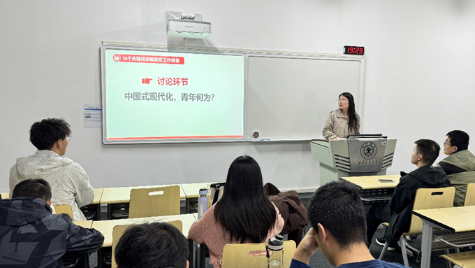 在解析《教育强国建设规划纲要(2024-2035年)》时,吴骥同学详细阐述了立德树人、基础教育、高等教育等方面的具体要求,强调了教育在强国建设中的基础性作用。最后,她呼吁同学们发挥青年力量,鼓励同学们要坚定理想信念,积极投身国家现代化建设,以科技创新为引领,为推动高质量发展贡献青春力量。