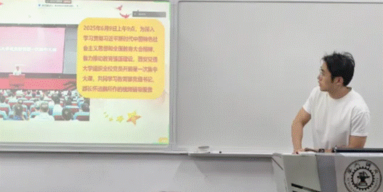 他谈到,今后将以此次学习为契机,持续加强理论武装,提升自身班长履职能力,努力在服务同学成长成才、服务学校内涵式高质量发展中践行初心使命、勇挑时代重任,切实发挥青年党员的先锋模范作用。