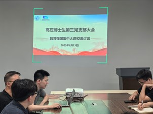 为深入贯彻习近平总书记关于教育的重要论述和党中央作风建设部署,进一步增强党组织的引领力和凝聚力,高压博士生第三党支部于2025年6月13日晚通过线上、线下相结合的方式召开支部组织生活。本次会议由宣传委员杨章主持,围绕两个主题展开:一是学习研讨“教育强国”集中大课,深入领会习近平总书记关于教育的重要论述;二是专题学习中央八项规定精神及“15235”工作机制,持续推动作风建设走深走实。