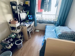 赵若辰:宿舍内置办了一个小书架来放一些喜欢阅读的书籍。虽然没有太多的装饰品,但是每天在这样干净整洁的环境中生活与学习感到神清气爽。