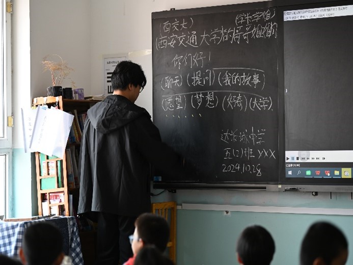 小朋友们满怀好奇地看着,心中渐渐燃起了对大学生活的向往。他们似乎看到自己的未来也能在这样的一所大学里闪闪发光。在影片结束后,支教团的成员们鼓励小朋友们将他们的感想、对大学的期待,以及对未来的梦想写在信里,寄给远在西安的硕4076团支部的同学们。