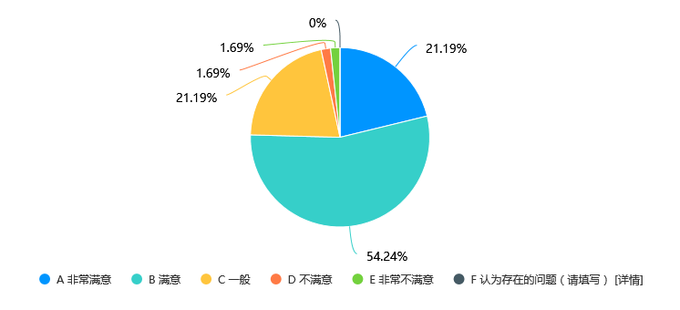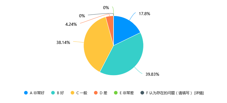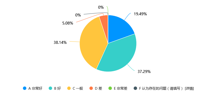 大部分受访者对所在城市的生活满意度表示满意(选择“非常满意”和“满意”),其中“满意”选项占比最高,达到了50%。仅有2.54%的受访者表示不满意,且没有人选择“非常不满意”或认为存在问题。从结果可以看出受访者对城市生活的满意度较高。