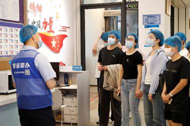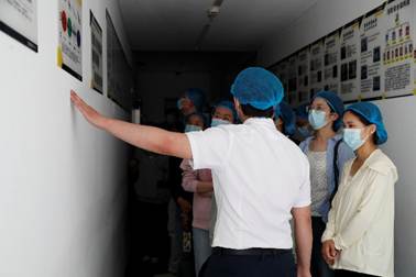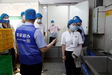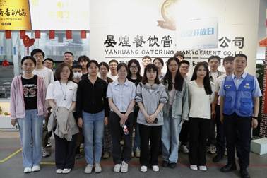 活动伊始,同学们在和鸣苑食堂二、三楼餐厅郑经理和一楼餐厅苗经理的带领下,有序进入食堂后厨参观收货区、储存区、洗消间、切配间、烹煮间等区域。通过郑经理和苗经理的详细介绍,同学们深入了解了餐厅总体情况、食堂卫生标准、食材采购流程、“十统一、六到位”管理制度和食堂工作人员日常操作规范。