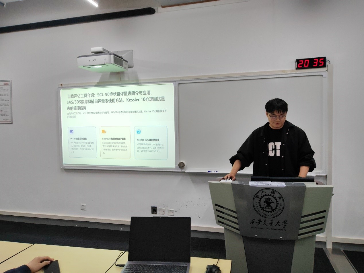 班会伊始,罗嗣朋同学用一组触目惊心的数据引发大家思考:全球约36%的研究生报告经历重度抑郁,41%表示曾受焦虑困扰;国内近半数研究生存在不同程度的心理健康问题;研究生中焦虑症发生率高达30%,抑郁症约为20%,超过半数存在睡眠问题……这些数据背后是每一位研究生可能面临的心理挑战。正如罗嗣朋所说:“良好的心理健康不仅是高学术成就的基础,更是科研创新的源泉,是未来职业发展的基石,更是生活幸福的保障。”