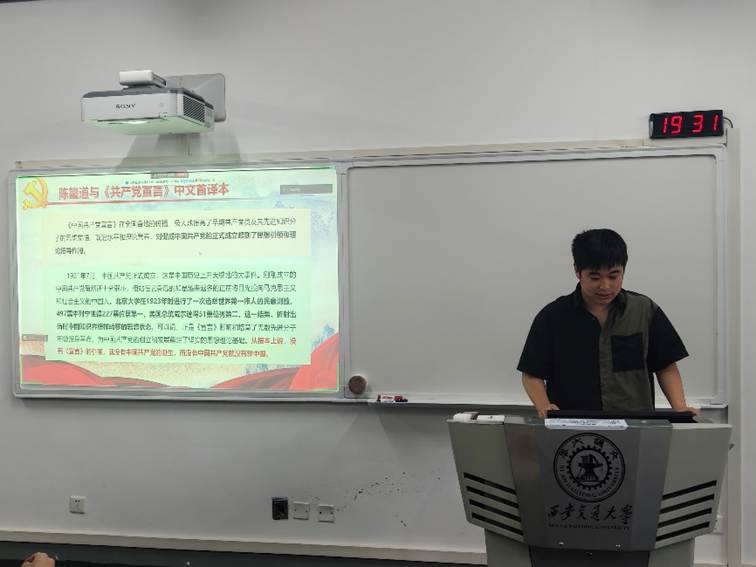 活动伊始,党支部书记孙宇菁带领大家重温了伟大建党精神的核心内涵,即中国共产党的精神之源——坚持真理、坚守理想,践行初心、担当使命,不怕牺牲、英勇斗争,对党忠诚、不负人民,随后在带领大家学习党的二十大报告和《共产党宣言》时,他谈到中国共产党要永远做中国人民和中华民族的主心骨。与会成员纷纷表示伟大建党精神是共产党员的初心,更是实现中华民族伟大复兴的根基,每个人都应为中华民族伟大事业贡献出自己的力量。