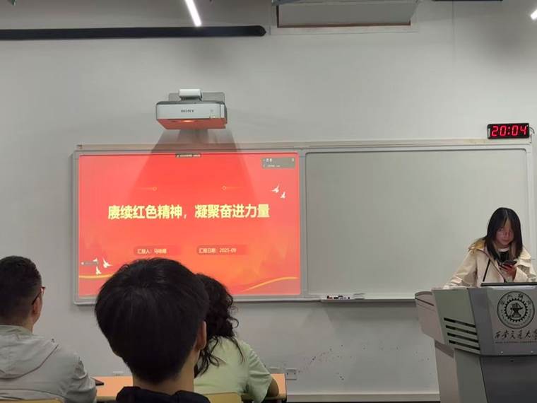 交流凝共识,感悟砺初心。在团支书的引导和鼓舞下,活动进入了热烈的互动交流环节。同学们踊跃发言,结合团支书的讲话内容、近期关注的红色事件以及自身的所见所闻、所思所感,畅谈对“红色精神”的理解与体悟。有的同学从“九三阅兵”中官兵们整齐划一的步伐和坚毅的眼神,谈到了纪律严明和钢铁意志的重要性;有的同学联想到革命先辈在艰苦岁月中的不懈斗争,表达了对今天幸福生活的珍惜与感恩;还有的同学结合专业学习,表示要将艰苦奋斗、勇于创新的精神运用到求知问学之中,为未来的科技强国贡献力量。现场气氛活跃,思想碰撞不断,一句句真挚的感言,展现了同学们对红色精神的深刻认同和自觉传承的决心,进一步凝聚了集体奋进的共识。
