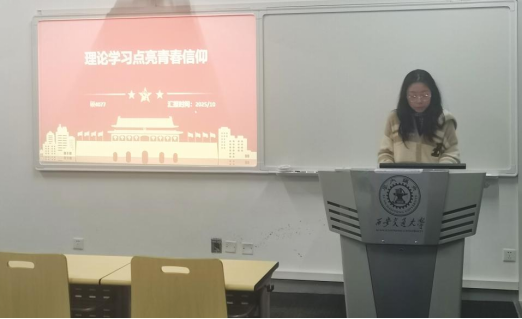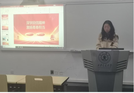 活动最后,团支部书记刘佳潼作总结发言。她强调,团员青年要自觉把政治理论学习作为精神“必修课”,不断用习近平新时代中国特色社会主义思想武装头脑,坚定理想信念,在学习中汲取思想伟力,在实践中勇于担当作为。要把回信精神内化于心、外化于行,在科研攻坚、社会服务、志愿行动等方面发挥青春能量,真正做到“学思用贯通、知信行统一”。