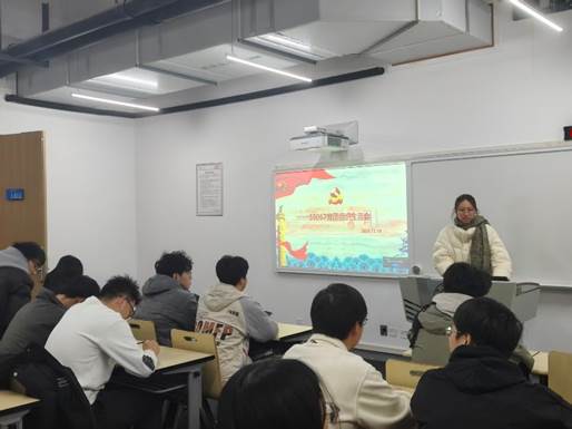 随后,支部以“传承红色基因 汲取奋进力量——纪念中国人民抗日战争暨世界反法西斯战争胜利80周年”为主题开展党课学习。张悦同志通过回顾烈士纪念日向人民英雄敬献花篮仪式等重大纪念活动,重温狼牙山五壮士、东北抗联八女投江等英雄事迹,带领同学们深切体会革命先烈以鲜血和生命铸就的伟大抗战精神。