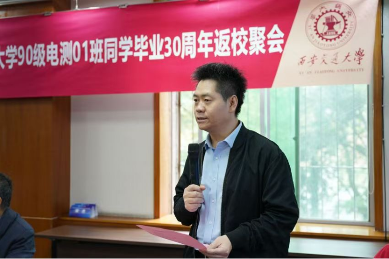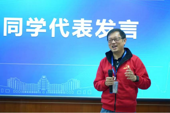 开展更深入的合作。钱政还强调了校友之间的紧密联系和团结精神,他自豪地表示,电测90级的校友们已经组织了五次聚会,这充分展现了他们之间深厚的同学情谊。他感慨道:“因为很幸福所以很年轻,祝愿各位老师身体健康,万事顺遂。”