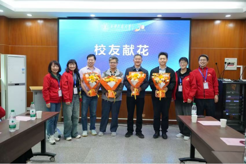 校友们向他们的授业恩师献上鲜花,表达了对老师们辛勤教导的敬意。胡红利教授在发言中感慨时光荏苒,学校和西安都发生了翻天覆地的变化,他期望校友们常回母校看看,感受母校的温暖和变化。