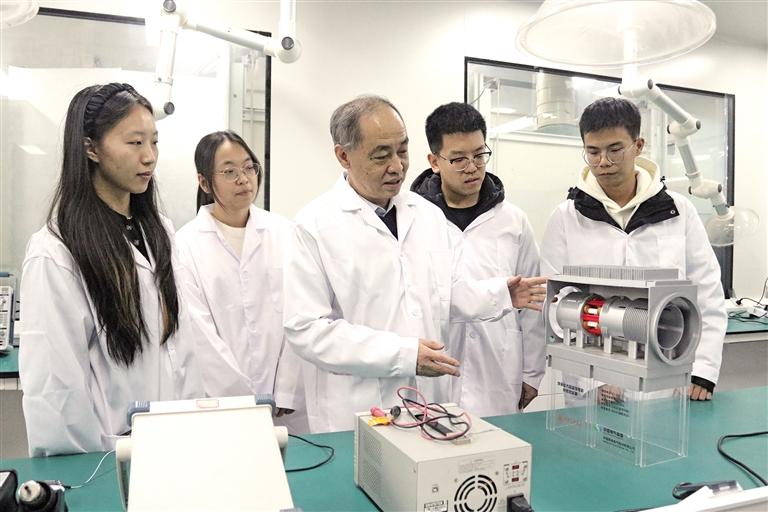 黄瓜视频 教授荣命哲(中)为学生讲解环保型发电机快速断路器的工作原理